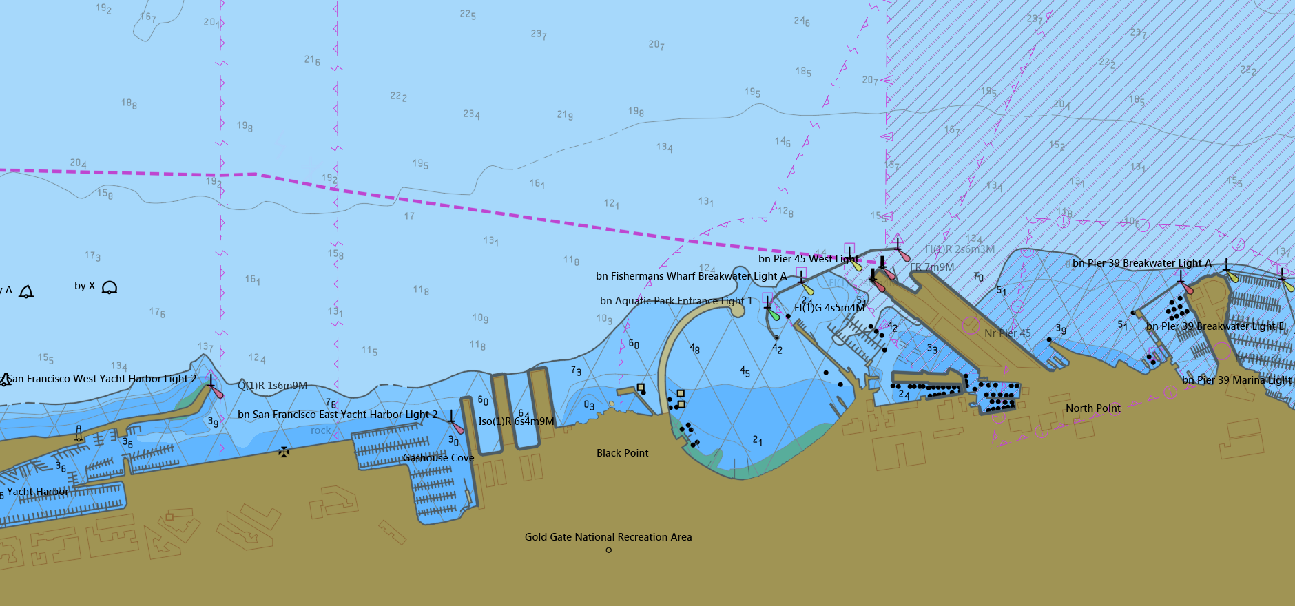 The IHO S-52 Presentation Library decribes the appearance of ENC charts in great detail by providing precise definitions of all symbols, colors, linestyles and fill patterns along with their alignment and drawing order. The Geomaris rendering engine displays ENC data in compliance with the latest Presentation Library Version 4.0.